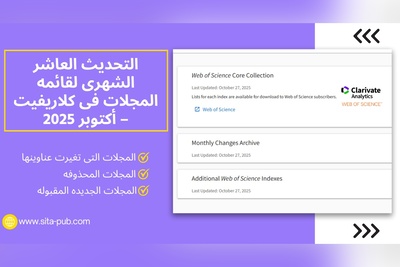 إن النشر فی مجلات مفهرسه ضمن Clarivate یُعَدّ ضمانًا للجوده، ومؤشرًا على الالتزام بالمعاییر الأکادیمیه العالمیه فی البحث والتحکیم والنشر.